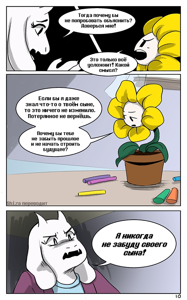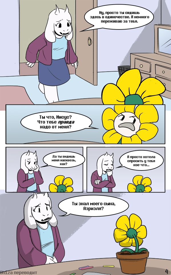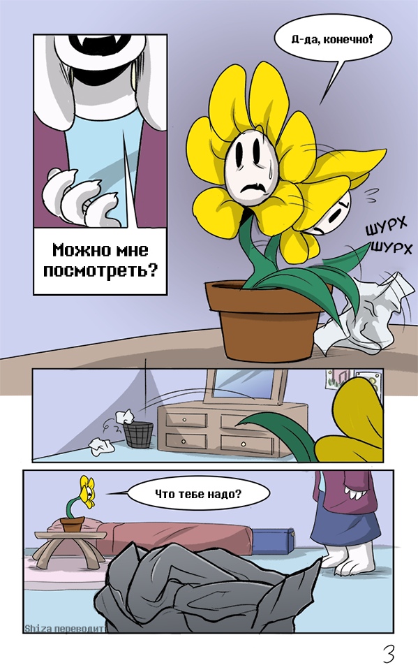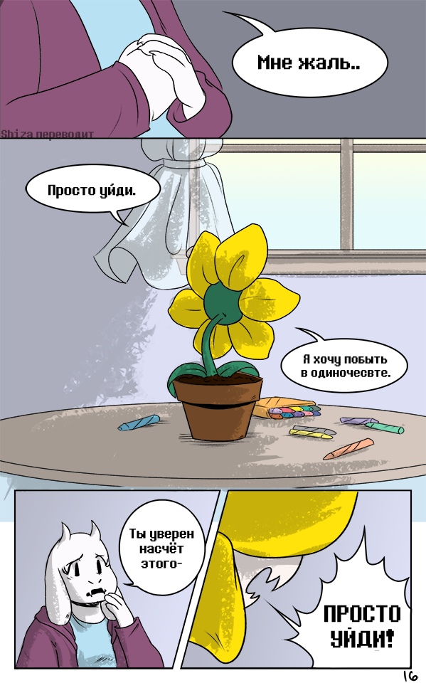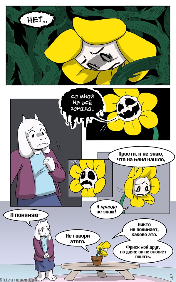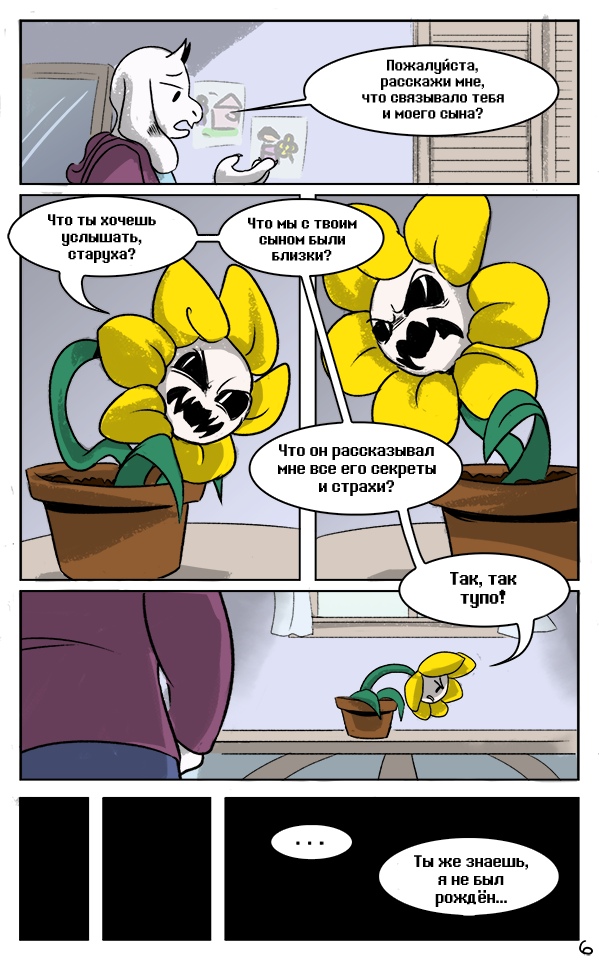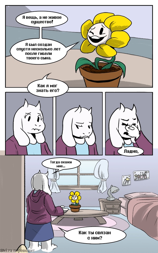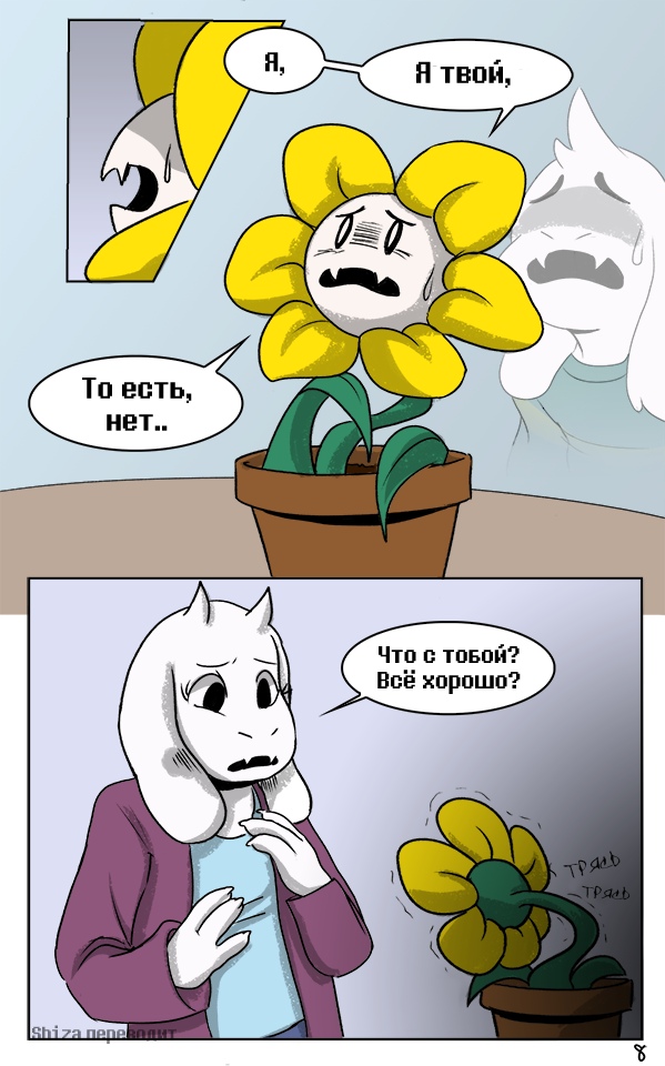 Комикс с Флауи из Андертейл и его не простой жизни. Комикс полностью переведен на русский. Так же можешь почитать комикс о Чаре или послушать песню Флауи.