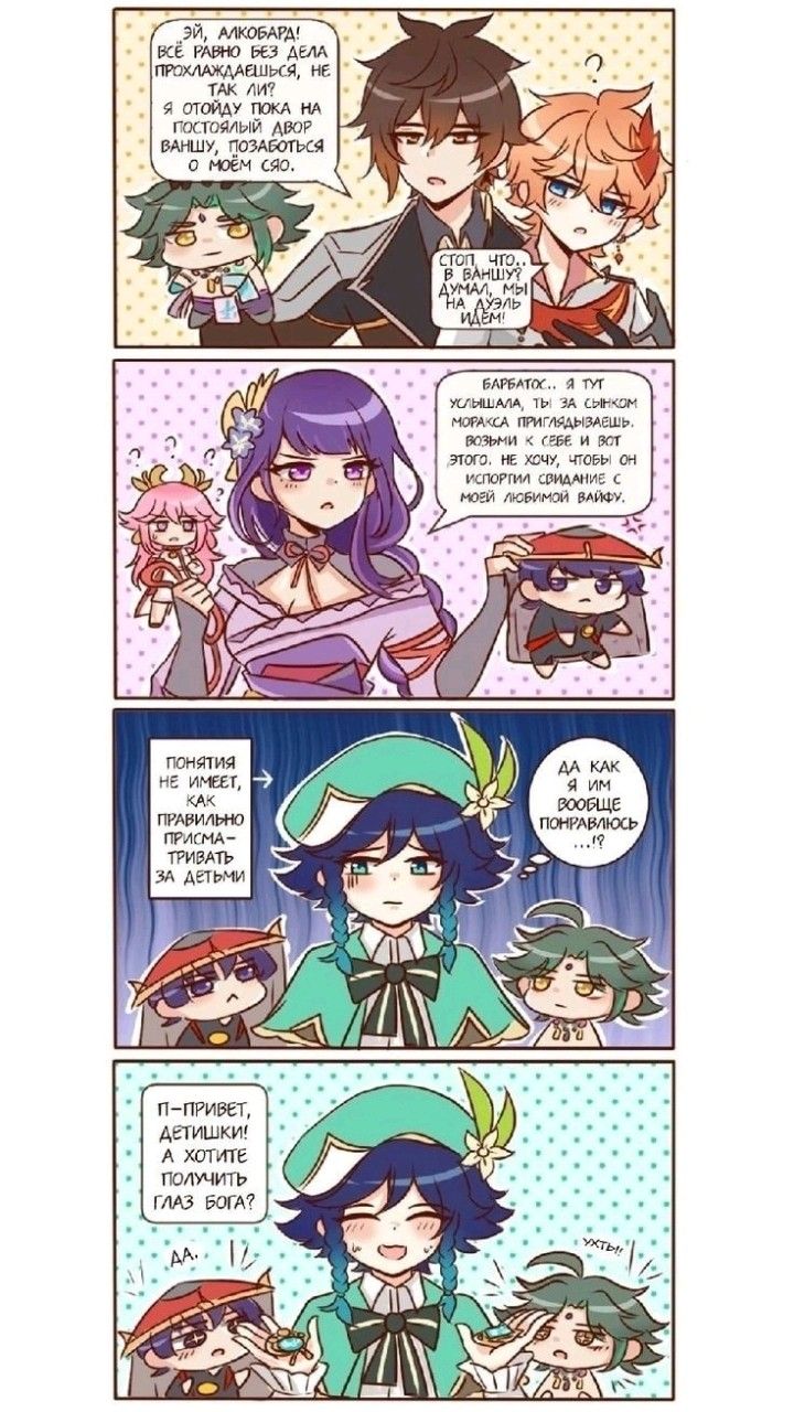 Подборка коротких комиксов и мемов по Genshin в виде миниатюрных зарисовок, смешных ситуаций и забавных моментов.