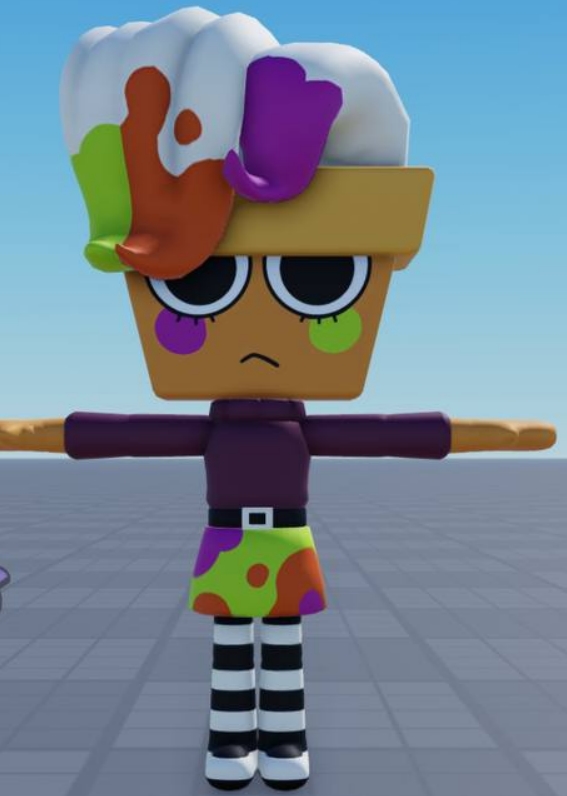 - 🎨 Браша — Scary Stylish. Яркий образ с полосатыми колготками и стильной атмосферой праздника.