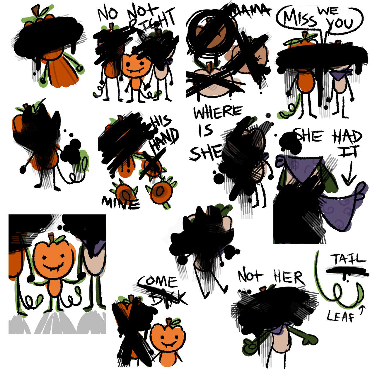 Рядом с рисунками можно увидеть схематичные образы — вероятно, родителей Горди.