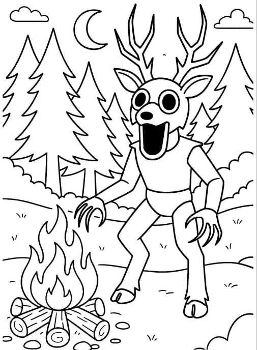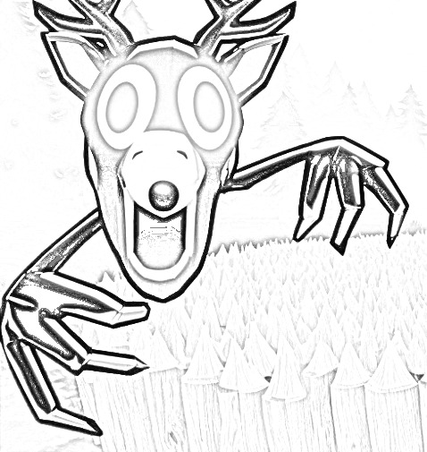 Подборка раскрасок оленя из игры 99 ночей в лесу Роблокс. Что бы скачать раскраску, просто нажми по картинке ПКМ и выбери “Сохранить изображение как”. Так же можешь скачать раскраски Детей, совы или Козла.