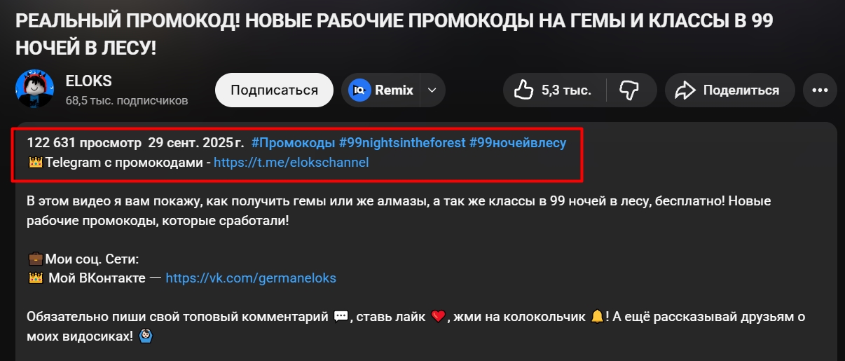 - Telegram-каналы: Это самый распространенный вариант. Блогеры обещают опубликовать код в своем Telegram-канале, таким образом искусственно “набивая” себе подписчиков. В дальнейшем эти подписчики могут стать жертвами других мошеннических схем или же их просто “перепродают” другим каналам.