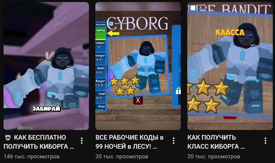 Мошенничество начинается с публикации коротких видео (shorts), в которых блогеры утверждают, что у них есть эксклюзивный и рабочий промокод на получение редкого класса “Киборг”. Зачастую в таких роликах демонстрируется отредактированный геймплей или поддельные скриншоты, чтобы убедить зрителей в подлинности кода.