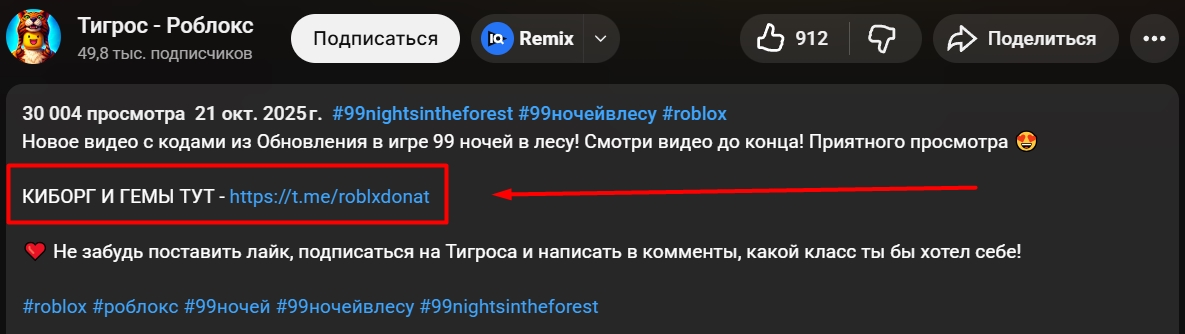 Главная цель этих коротких видео – заманить игроков на более длинные ролики на YouTube. Именно в этих видео и кроется основная часть мошеннической схемы. В описании или в самом видео размещаются ссылки, которые якобы ведут к получению заветного промокода.