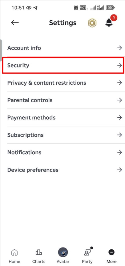 - Нажмите значок шестерёнки (Settings) → Settings → вкладка Security.