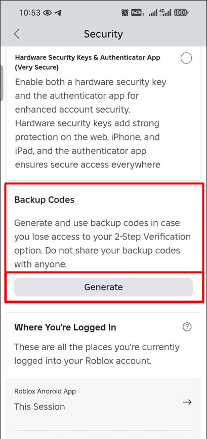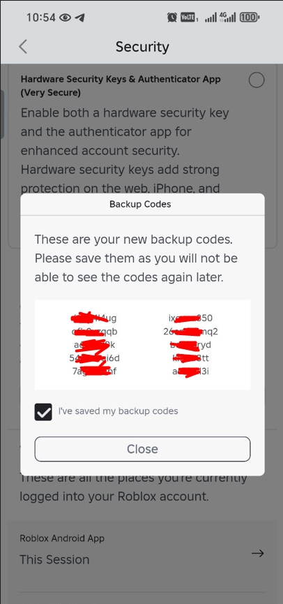 - Roblox покажет вам список кодов — сохраните их в безопасном месте (см. раздел «Как хранить»).