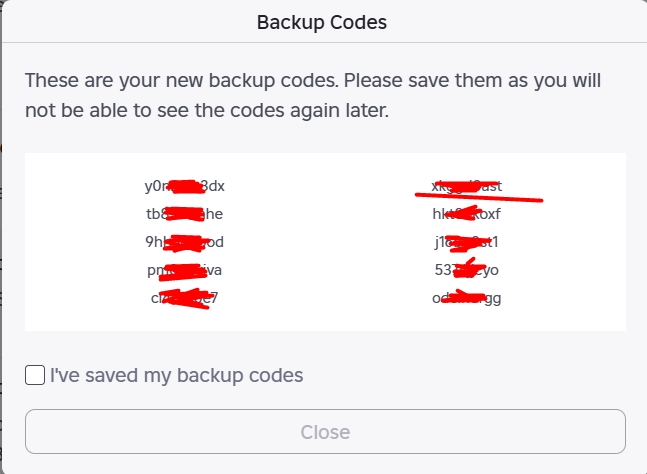 | Хочу обновить/сменить резервные коды | На странице Security нажмите Generate — новые коды заменят старые. |