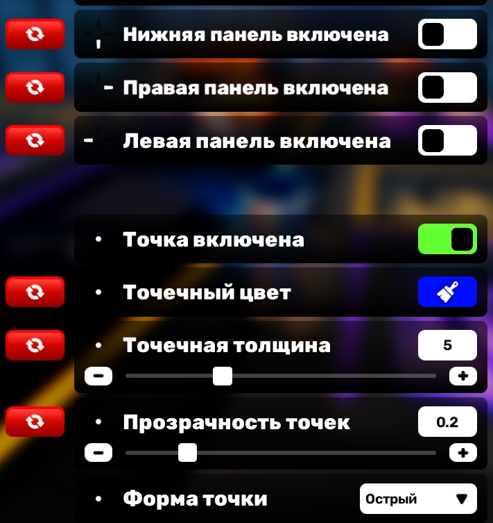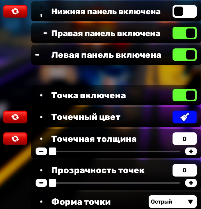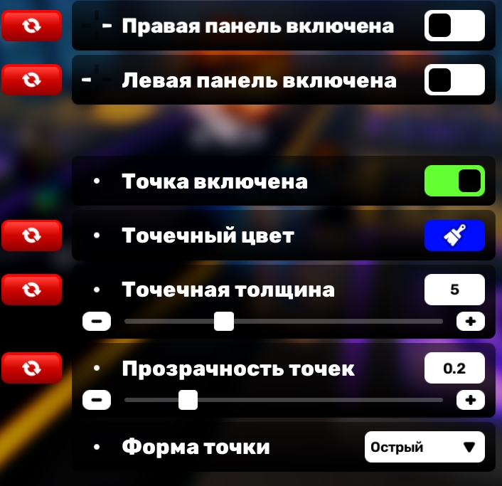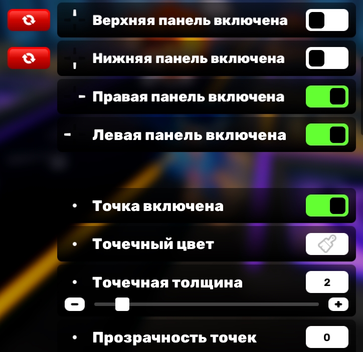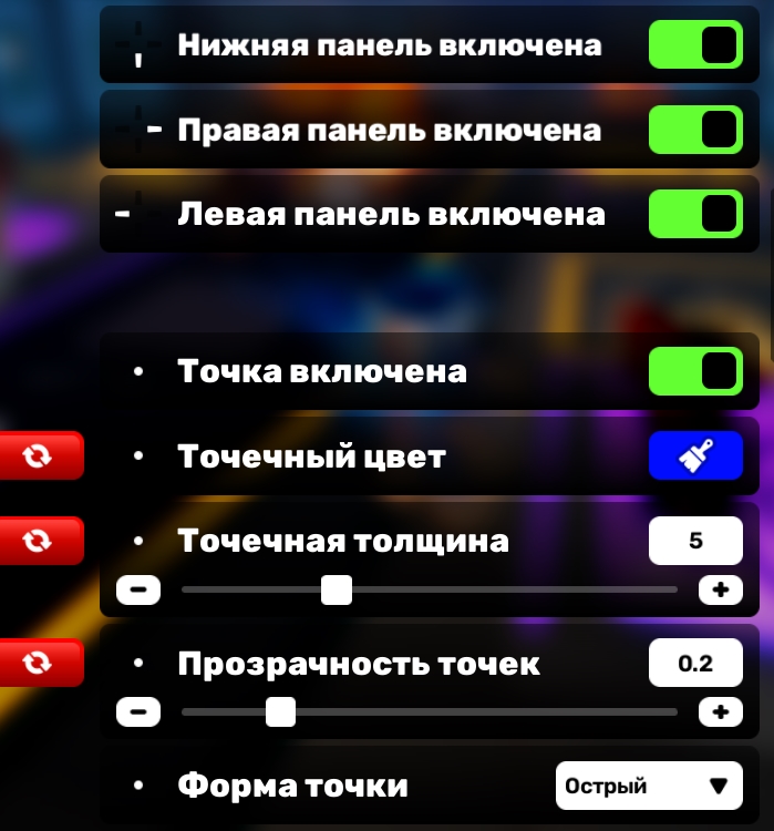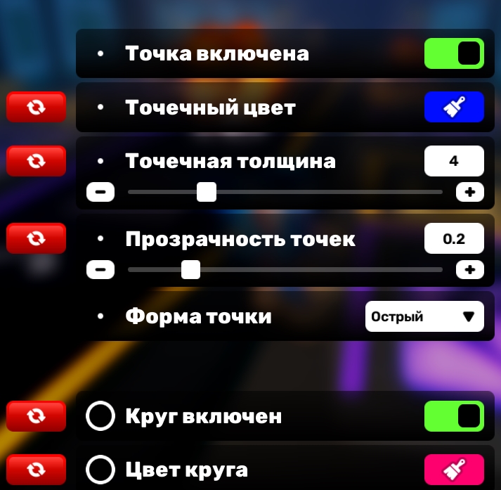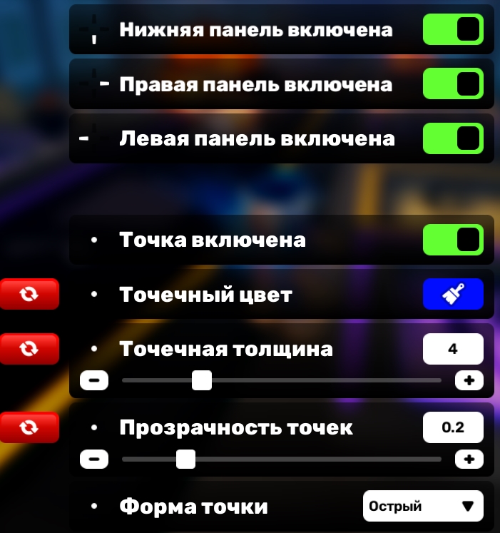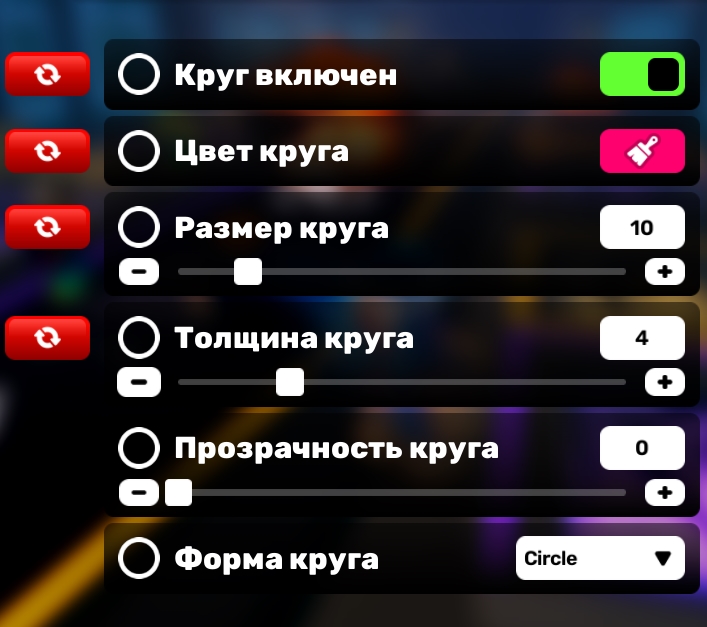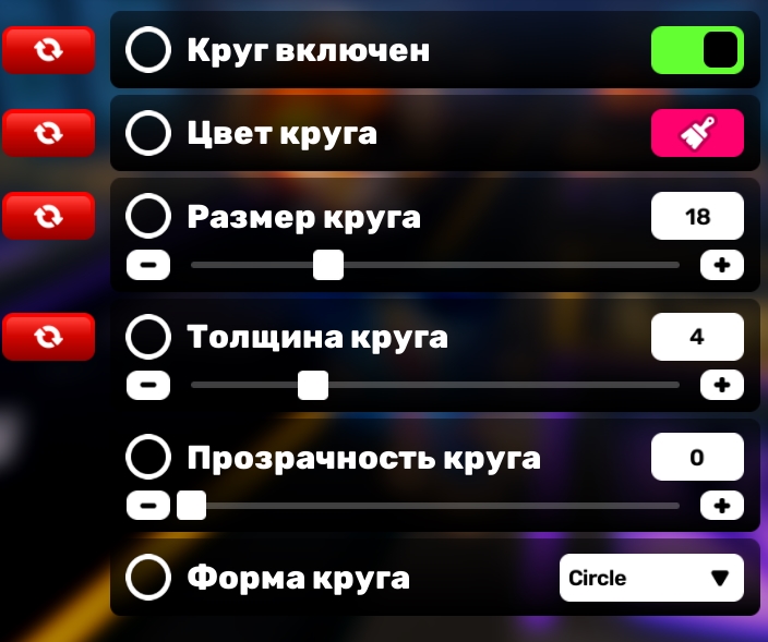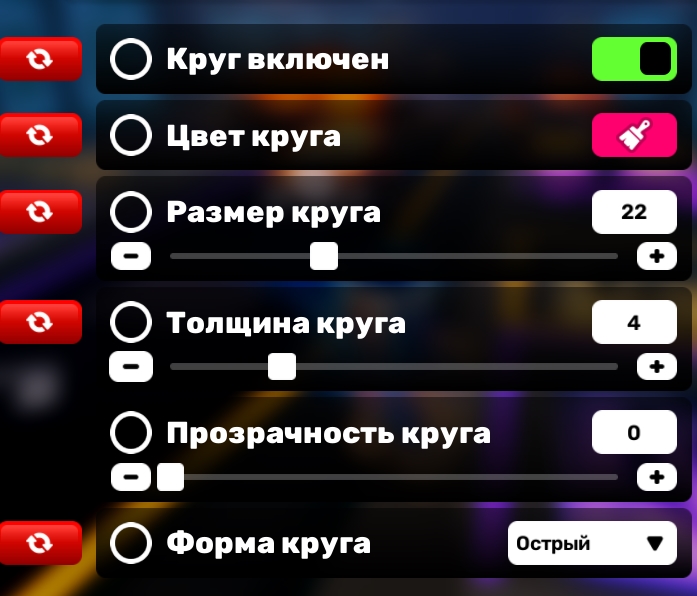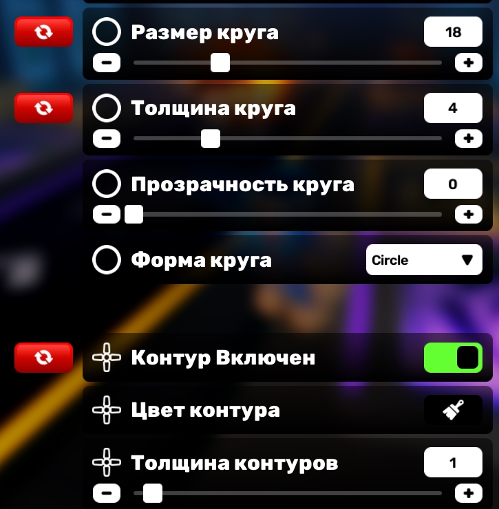 | Opacity (Прозрачность) | 100% | Чтобы прицел всегда был отчётливо заметен. |