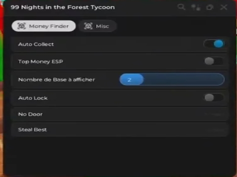 | No Key Script (Xeno Executor) | Полёт, ESP, автособирание, Kill Aura, не требуется ключа | loadstring(game:HttpGet("https://raw.githubusercontent.com/nouralddin-abdullah/ToastyHub-XD/refs/heads/main/hub-main.lua"))() Source: https://cheater.fun/hacks_roblox/11413-99-nights-in-the-forest-script.html |